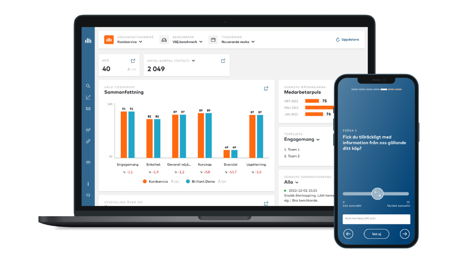 Genom att använda enkäter och andra metoder kan man mäta kundnöjdhet och identifiera områden som behöver förbättras. Brilliant är en värdefull partner för organisationer som vill mäta kundnöjdhet och få värdefulla insikter om kundernas feedback. Med Brilliant kan man skapa enkäter som ger hög svarsfrekvens och tillförlitliga resultat, och sedan använda resultaten för att förbättra kundupplevelsen och öka kundlojaliteten.