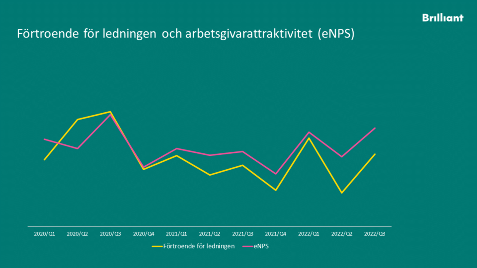 Men det är just diskussionerna och arbetet med resultaten som driver utvecklingen, inte själva undersökningen. Mellan mätningarna stöttar vi på Brilliant löpande chefer, grupper och hela organisationer att ta sig mot nya mål. Det är i det arbetet magin uppstår.