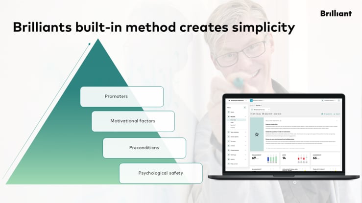 For many organisations, the combination of Brilliant’s platform and our consulting support from Brilliant Consulting is essential to creating real impact. By working in a data-driven way, we gain a clear picture of the current situation. With support from our organisational development consultants, it becomes easier to understand trends, what drives results and how other organisations succeed in similar situations.